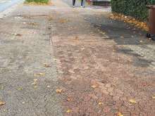 Nachdem der Asphalt für die Verlegung von kabeln geöffnet und wieder gepflastert wurde, ist ein Unterschied in der Höhe vorhanden