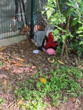 Erneut Abfalltüten am Bahnübergang Antoniusplatz am Tor der Kleingartenanlage zwischen Oberdiessemer Straße und Voltastrasse - Danke!